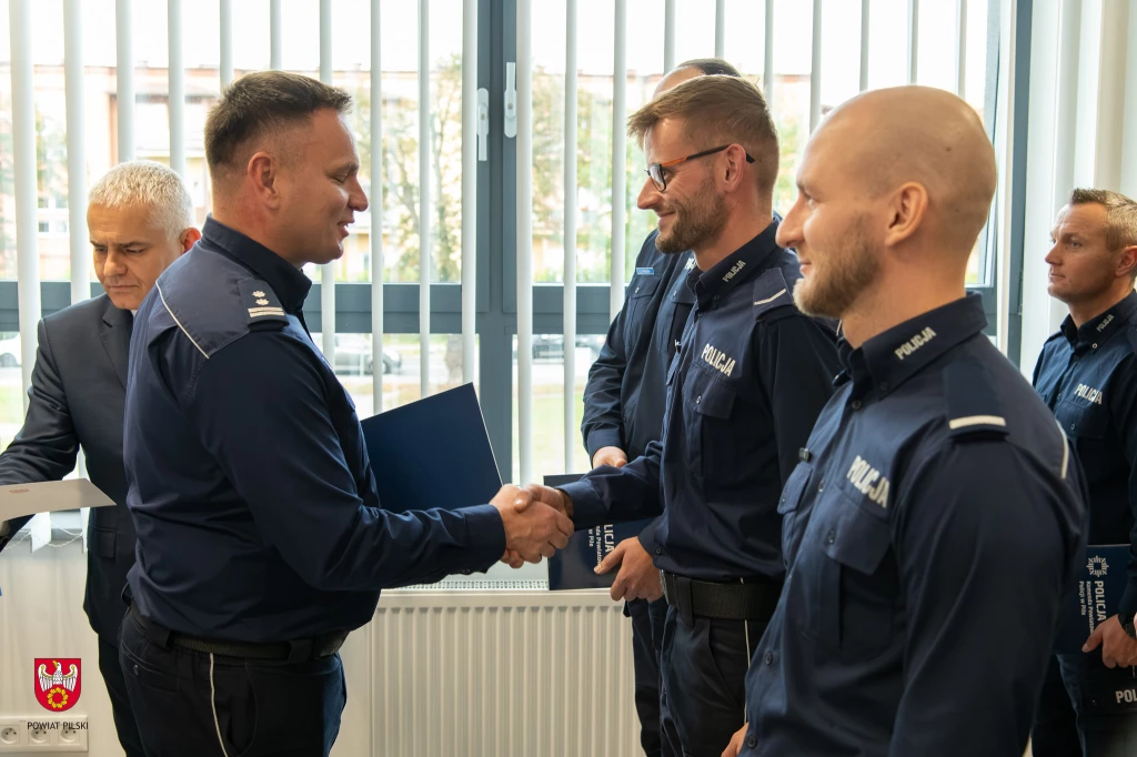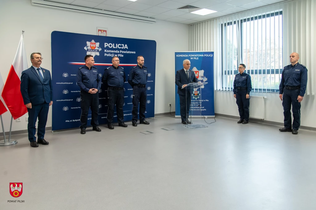 Starosta pilski Rafał Zdzierela, gratulując nagrodzonym, podkreślił ich ważną rolę w zapewnianiu porządku publicznego, a także w budowaniu poczucia bezpieczeństwa wśród mieszkańców powiatu. Życzył im dalszych sukcesów zawodowych, satysfakcji z pełnionej służby oraz bezpiecznego powrotu z każdej interwencji.