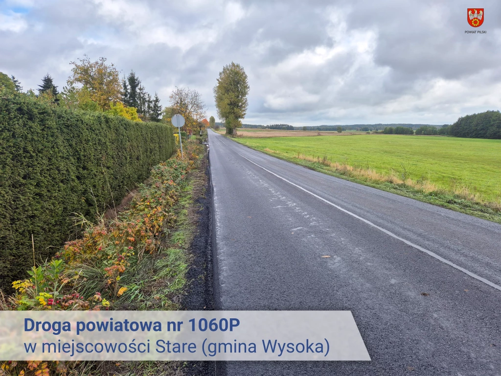 W ramach planu modernizacji dróg powiatowych na 2025 rok, kolejne odcinki zyskują nową jakość. Zakończono właśnie prace przy przebudowie drogi powiatowej nr 1060P w miejscowości Stare (gmina Wysoka).