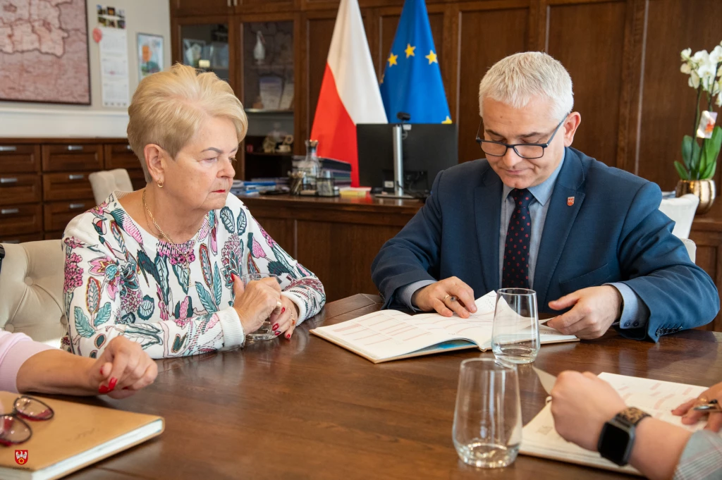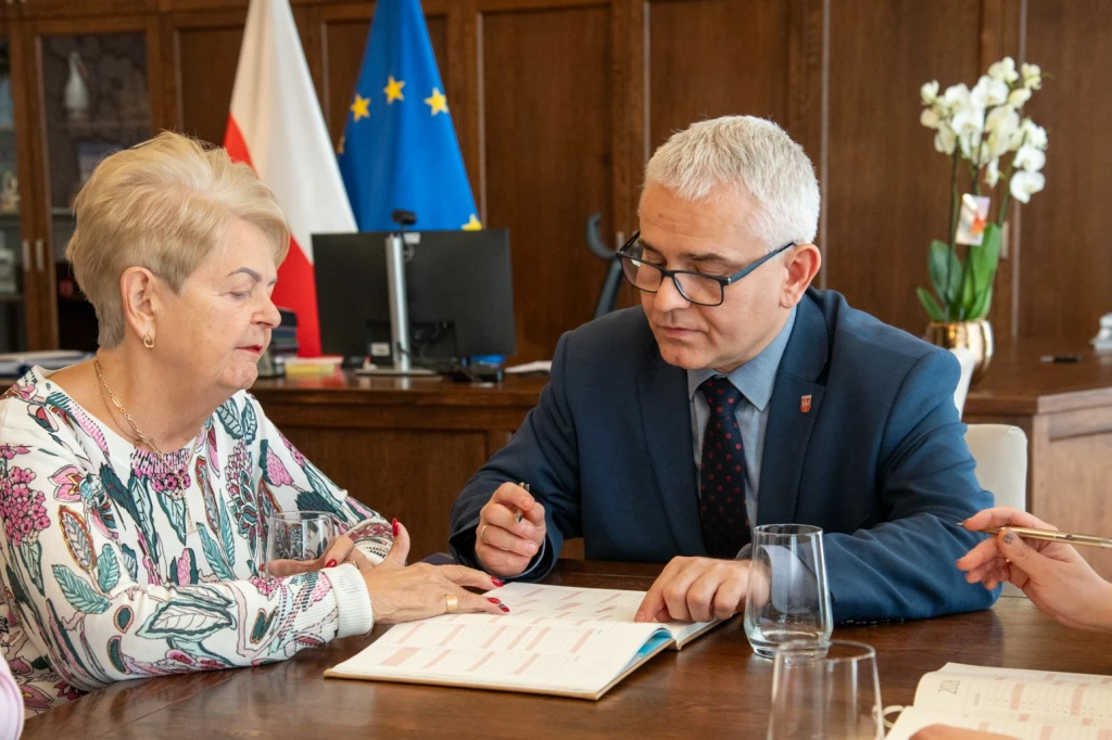 Rafał Zdzierela, starosta pilski spotkał się z Leokadią Figurniak, przewodniczącą Zarządu Oddziału Okręgowego Polskiego Związku Emerytów i Rencistów w Pile.
