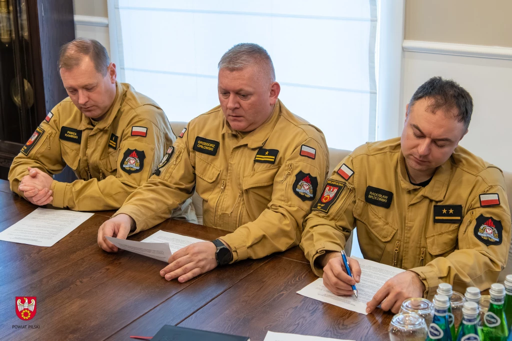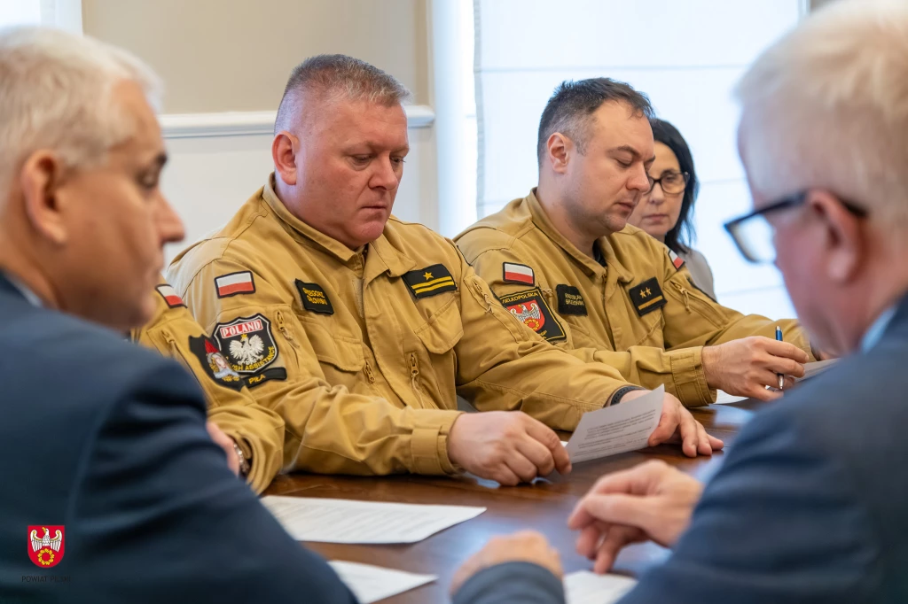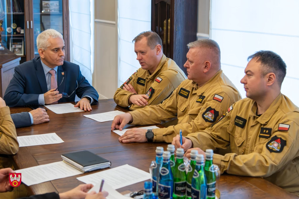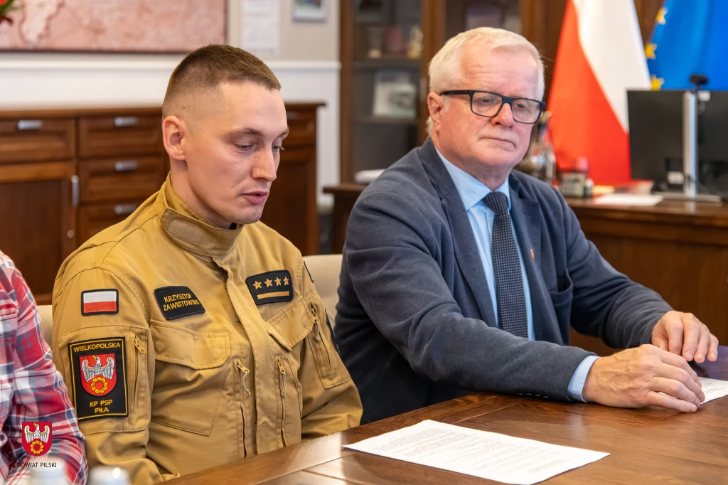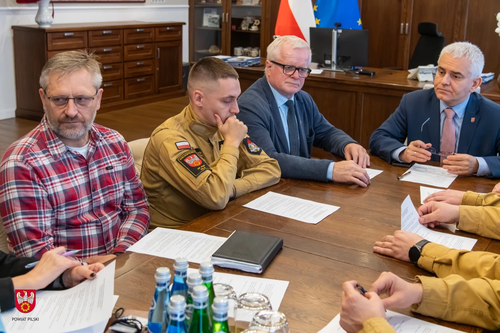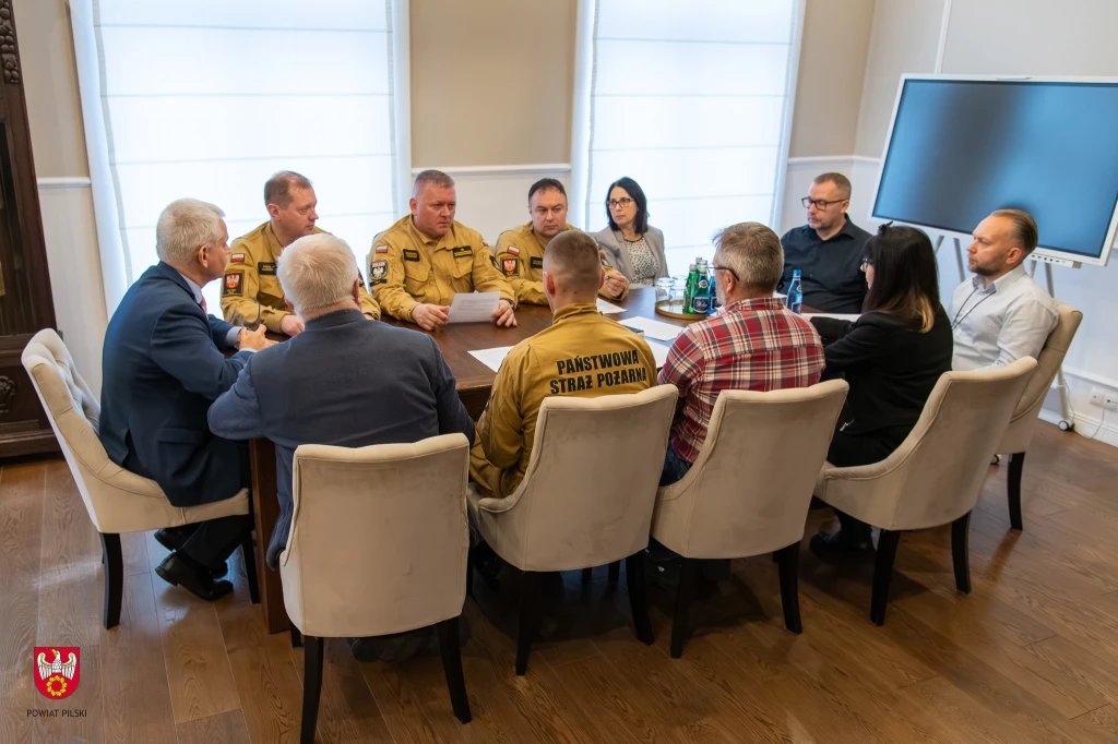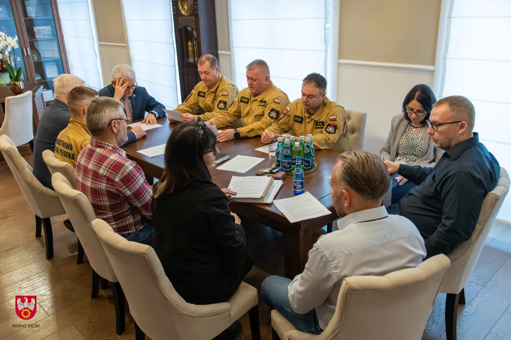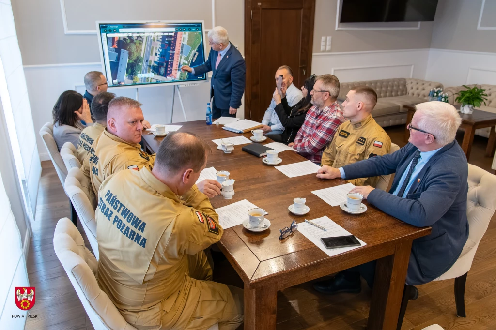 W spotkaniu uczestniczyli m.in. starosta pilski Rafał Zdzierela i wicestarosta Stefan Kowal, a także przedstawiciele Komendy Powiatowej PSP w Pile, w tym mł. bryg. Paweł Kamiński, komendant powiatowy oraz mł. bryg. Grzegorz Orłowski, dowódca JRG nr 1. Celem spotkania było omówienie przebiegu ćwiczeń, wskazanie mocnych stron akcji oraz elementów wymagających dalszego doskonalenia.