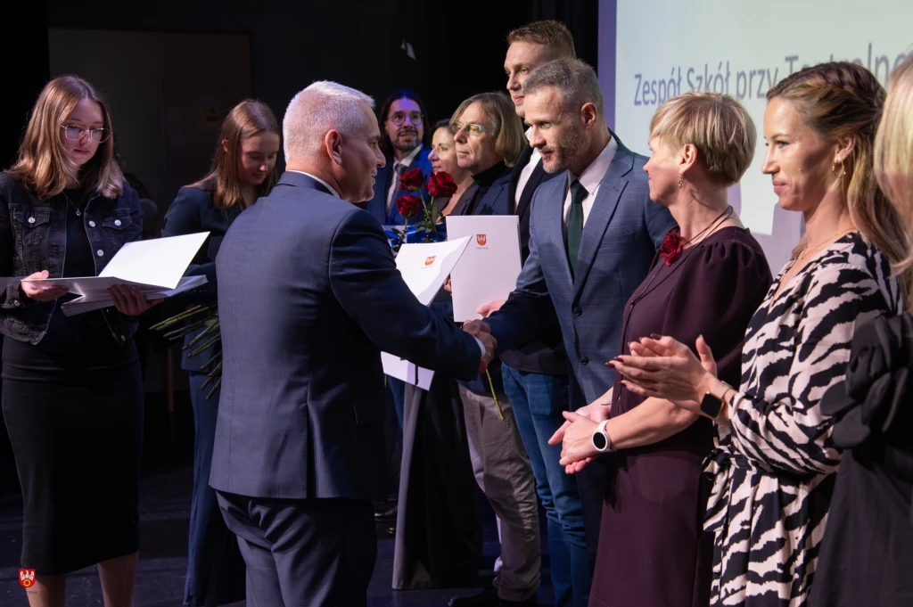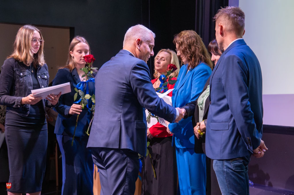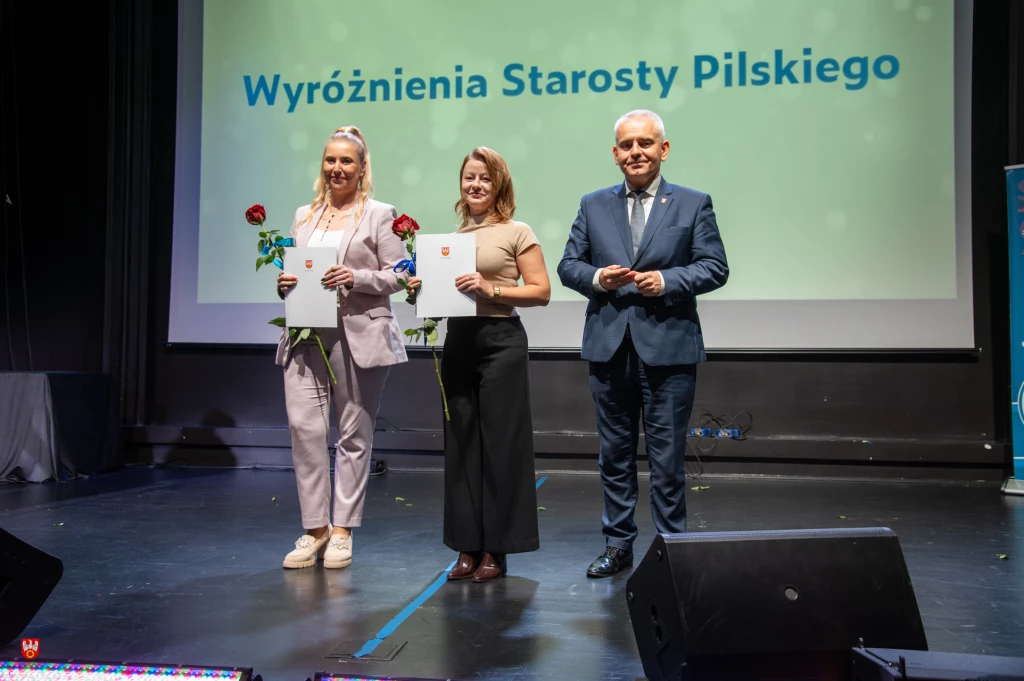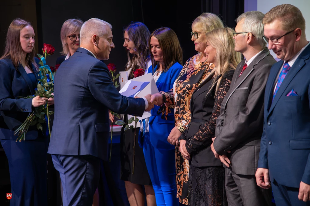 Podczas uroczystości starosta Pilski Rafał Zdzierela wręczył gratulacje oraz nagrody dyrektorom, wyróżniającym się nauczycielom i pracownikom obsługi.