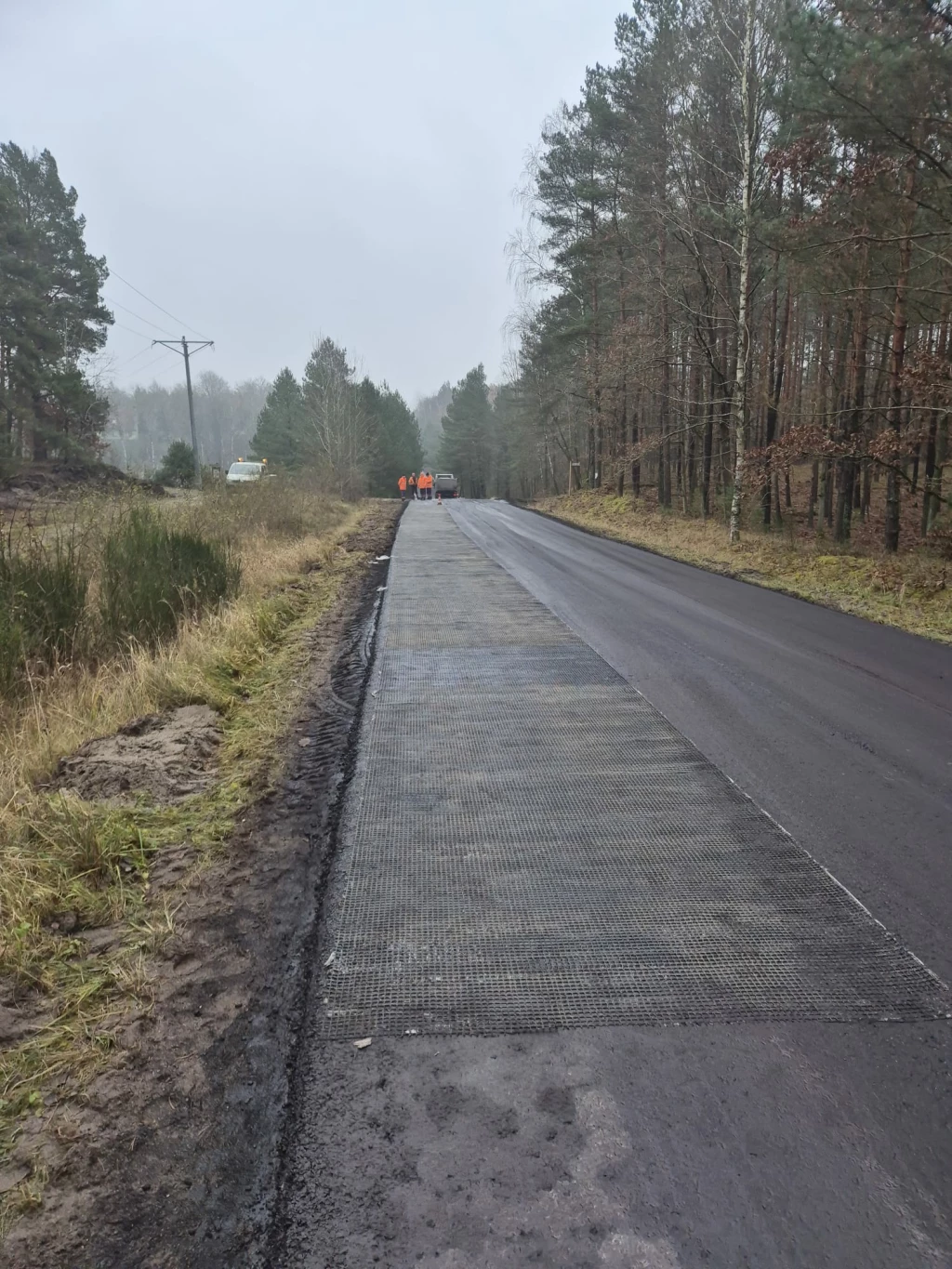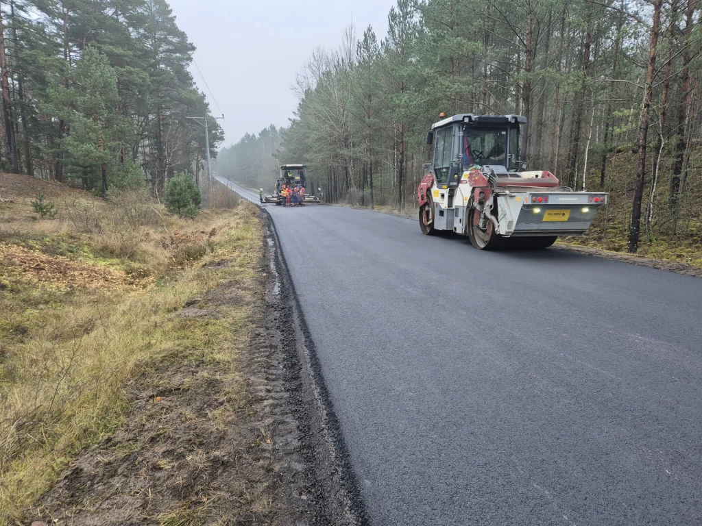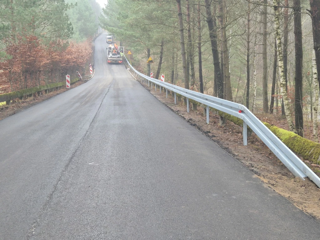 Aktualnie układane są kolejne warstwy wyrównawczo - wiążące. Dodatkowo montowane są też stalowe bariery sprężyste w miejscach niebezpiecznych.