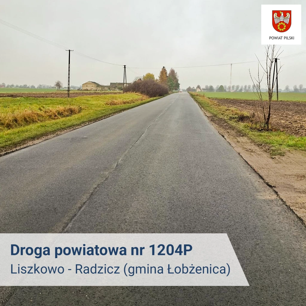 Kolejny odcinek dróg powiatowych zyskał nową nawierzchnię. Chodzi o drogę powiatową nr 1204P na odcinku Liszkowo – Radzicz, w gminie Łobżenica.