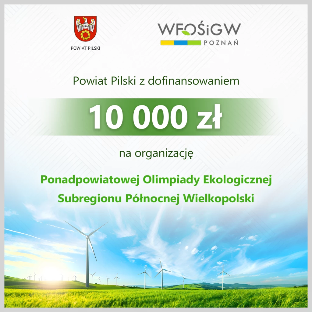 Powiat Pilski pozyskał dofinansowanie w wysokości 10 000 zł z Wojewódzkiego Funduszu Ochrony Środowiska i Gospodarki Wodnej w Poznaniu na organizację XVII Ponadpowiatowej Olimpiady Ekologicznej Subregionu Północnej Wielkopolski, której finał odbędzie się jesienią tego roku.
