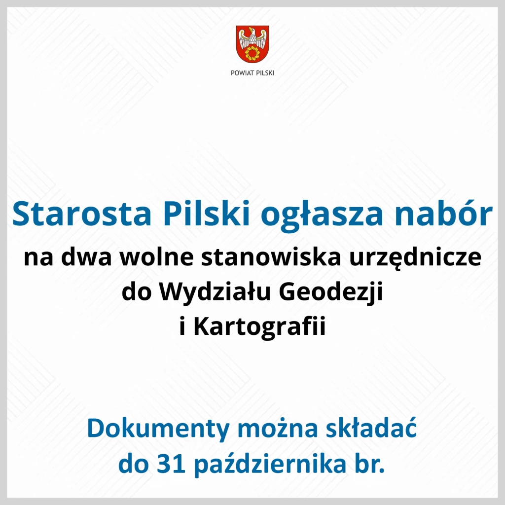 Starosta Pilski ogłasza nabór na wolne stanowiska urzędnicze w Starostwie Powiatowym w Pile: