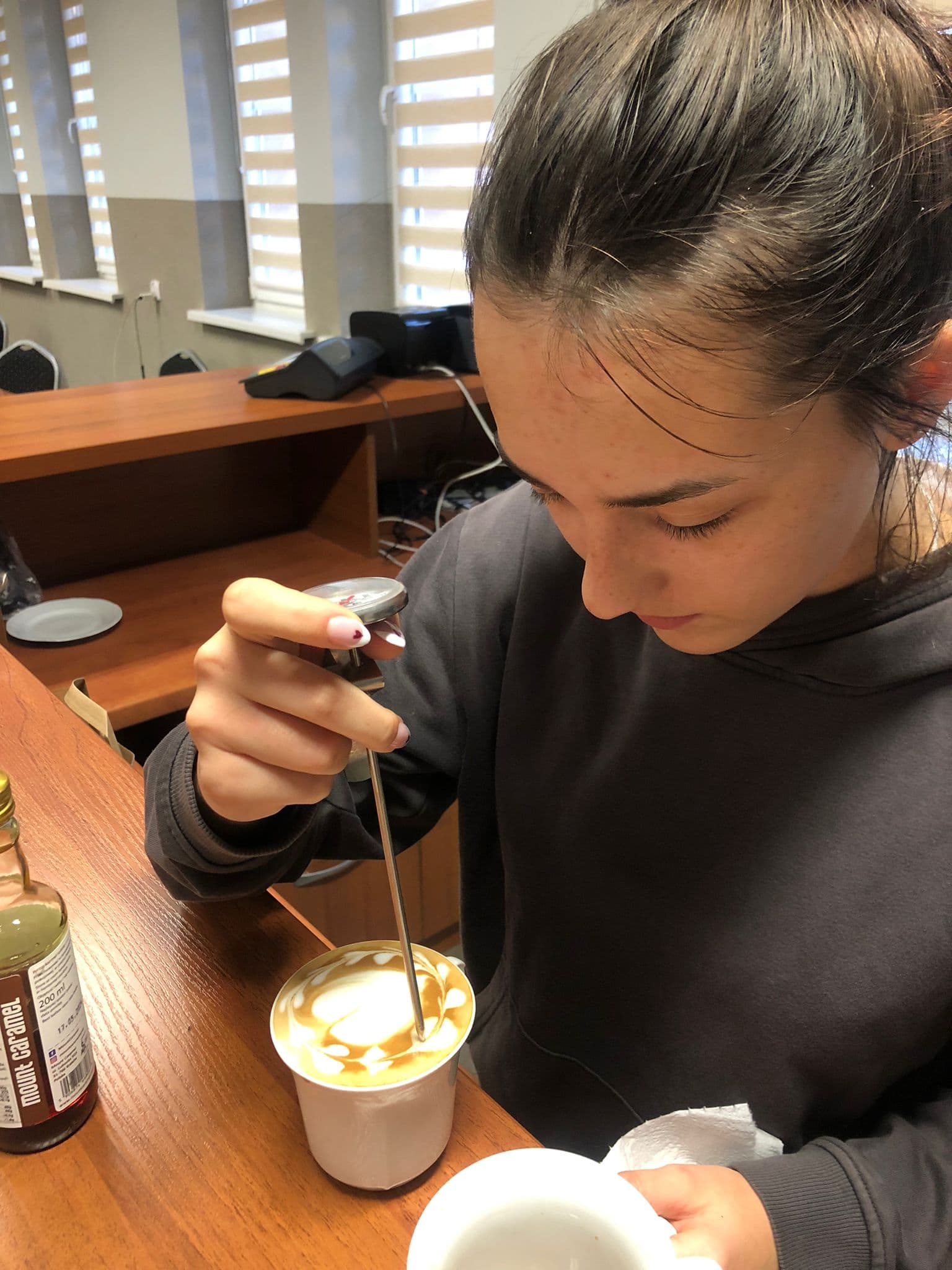 Zaplanowano kurs dla uczniów/uczennic technikum hotelarskiego, który pozwoli na nabycie dodatkowej umiejętności jaką jest specjalizacja w zakresie pracy w zawodzie baristy.