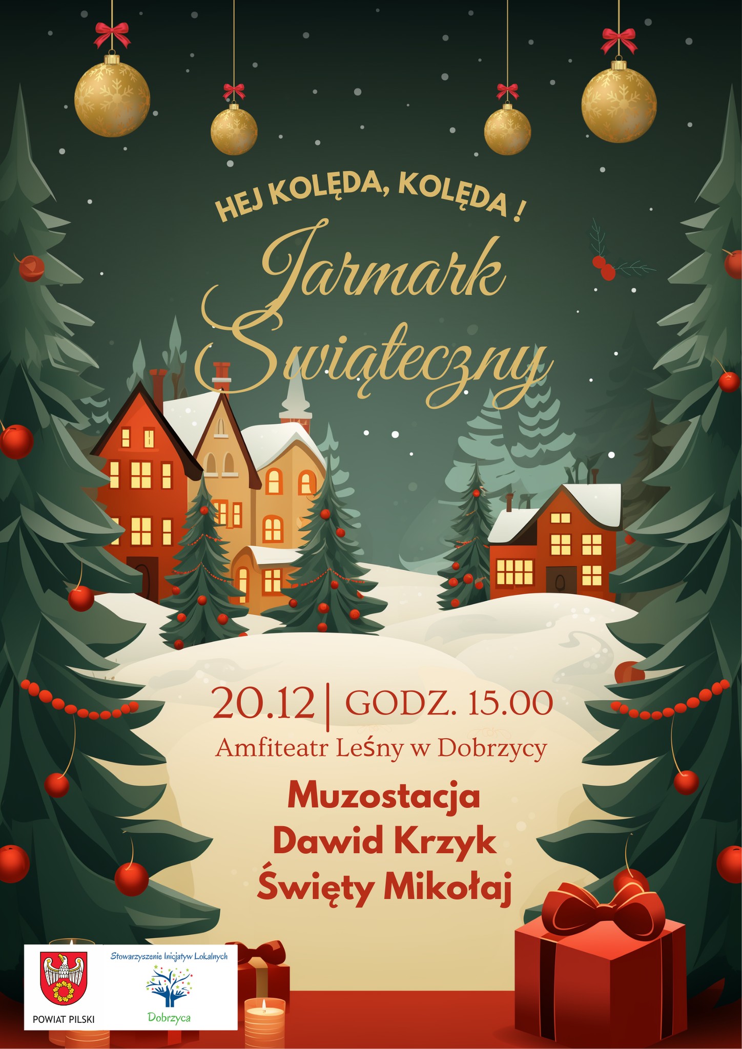 Stowarzyszenie Inicjatyw Lokalnych „Dobrzyca” serdecznie zaprasza mieszkańców i gości na Jarmark Świąteczny „HEJ, KOLĘDA, KOLĘDA”, który odbędzie się 20 grudnia, w Amfiteatrze Leśnym w Dobrzycy. Start imprezy o godzinie 15:00. Patronat honorowy nad wydarzeniem objął starosta pilski, Rafał Zdzierela.