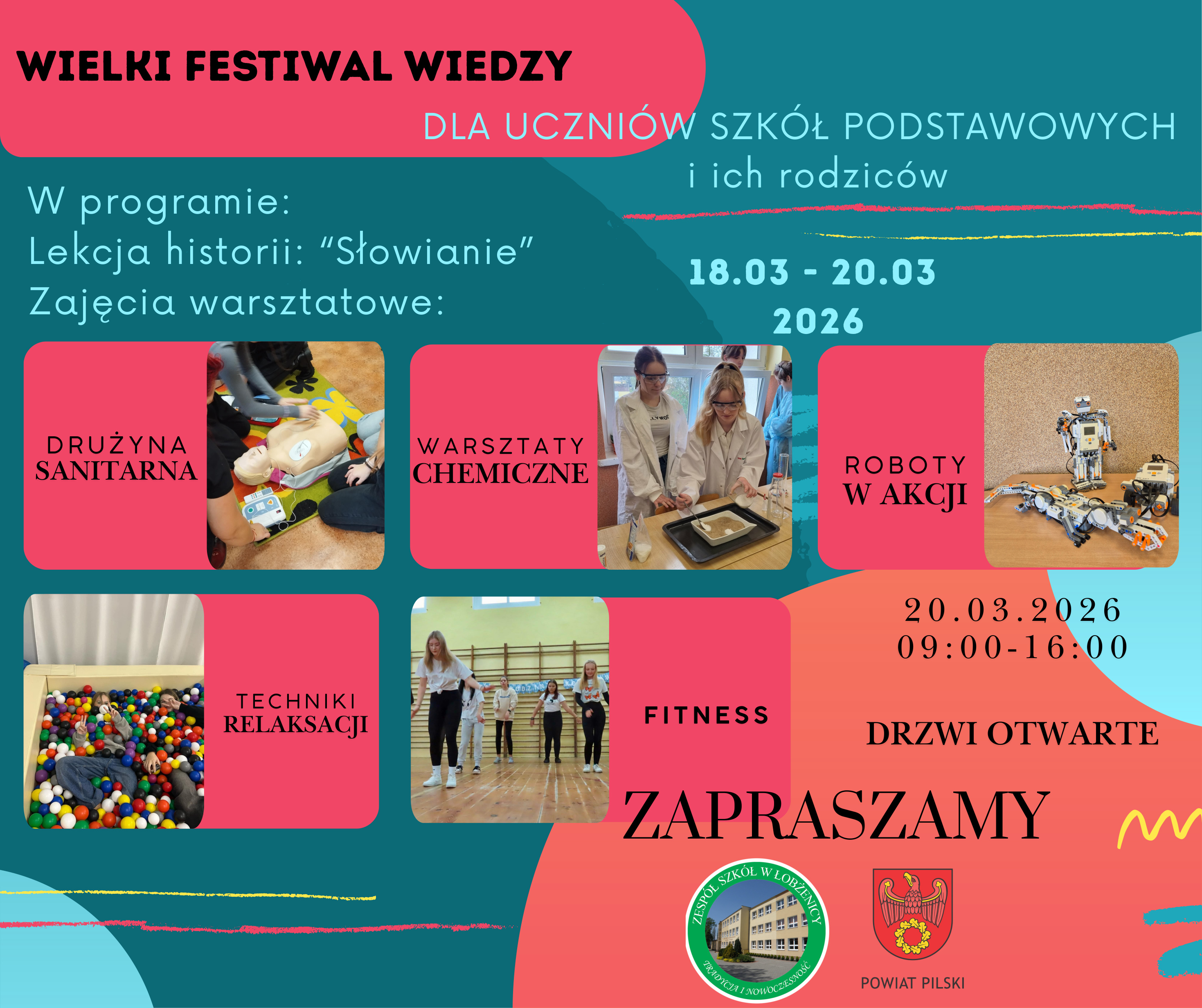 Dyrektor Zespołu Szkół w Łobżenicy serdecznie zaprasza uczniów klas VIII szkół podstawowych na Wielki Festiwal Wiedzy w dniach 18-20 marzec 2026r.