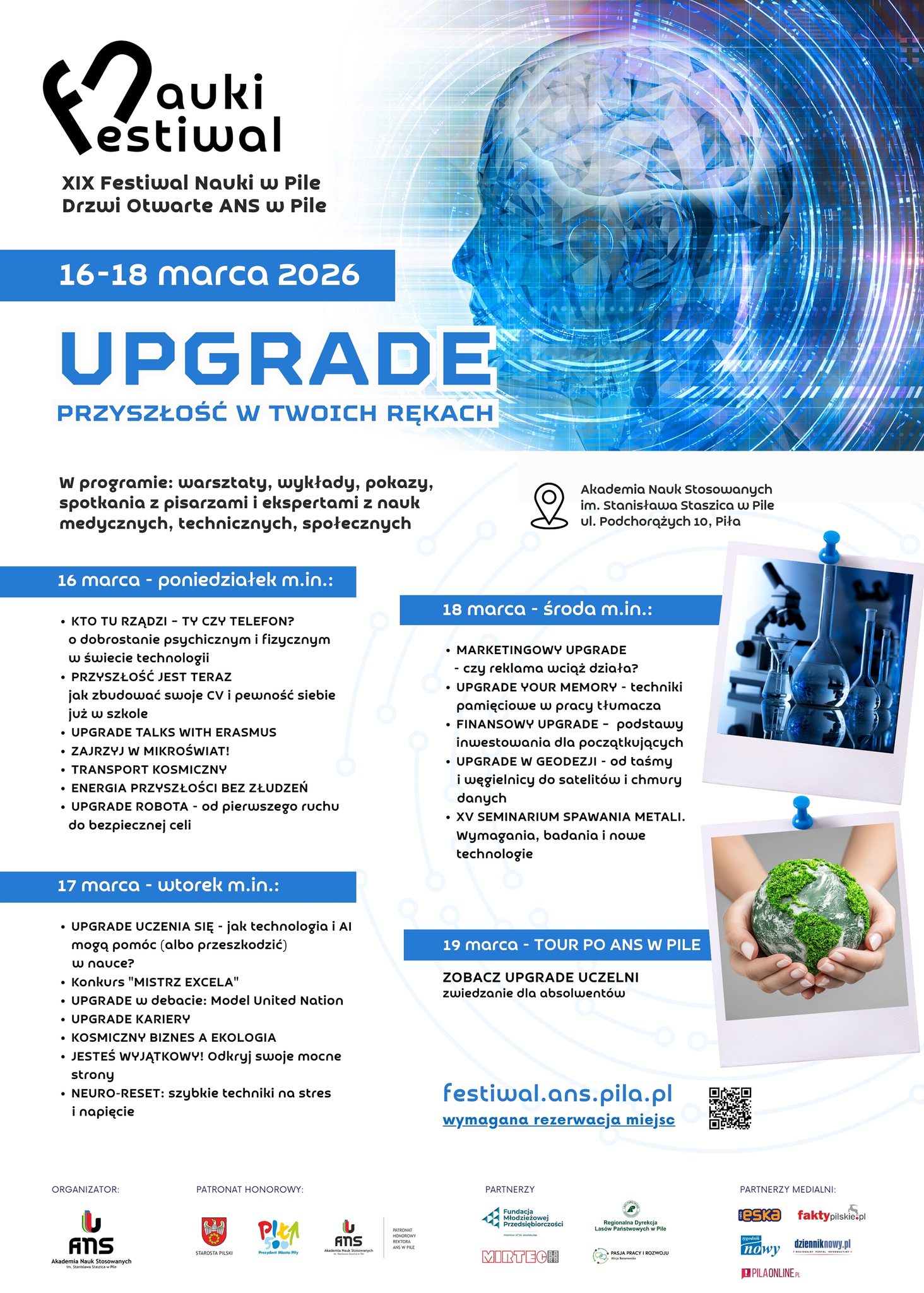 Podczas Festiwalu pokażemy, że upgrade dotyczy nie tylko nowoczesnych technologii i wiedzy technicznej, ale także kreatywności, krytycznego myślenia, odwagi w zadawaniu pytań i odpowiedzialności za otaczającą nas rzeczywistość. To właśnie te kompetencje dziś decydują o tym, jak będziemy funkcjonować w dynamicznie zmieniającym się świecie.