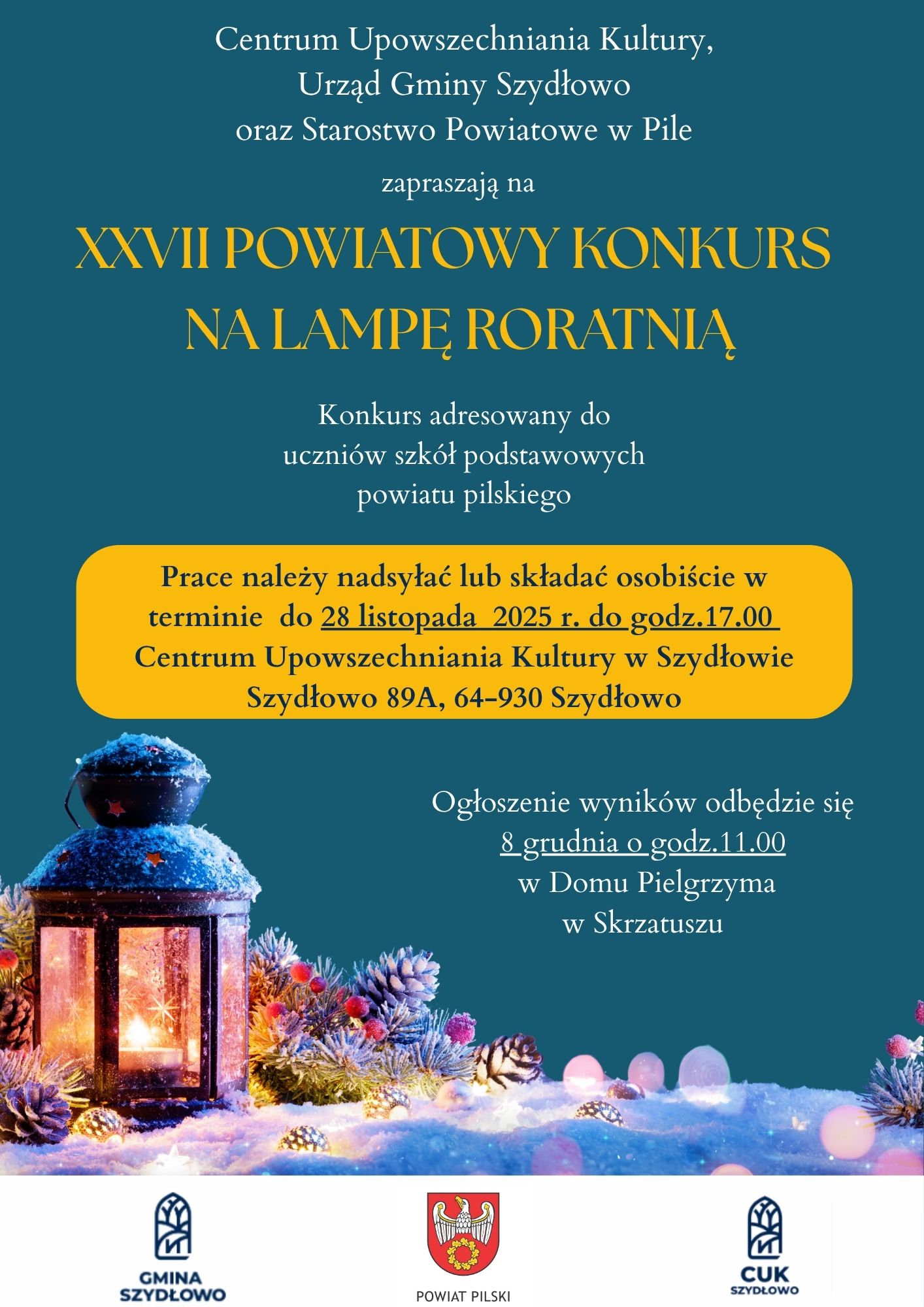 8 grudnia 2025 r. o godzinie 11:00 w Domu Pielgrzyma w Skrzatuszu odbędzie się ogłoszenie wyników XXVII Powiatowego Konkursu na Lampę Roratnią.